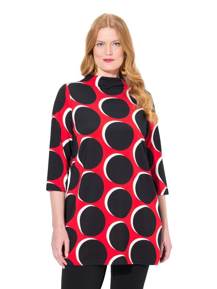 Толстовка А-силуэта из мягкой вискозы с точечным рисунком. Прикрепленный воротник-стойка, прямые рукава 3/4. Боковые разрезы для еще большей свободы движений.