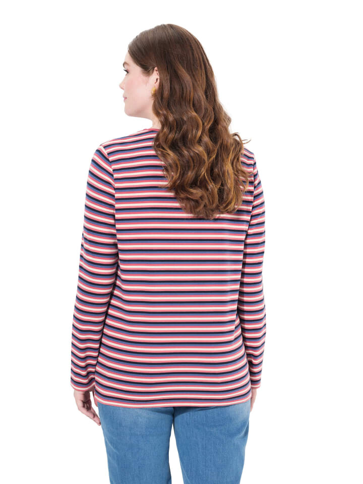 Полосатая рубашка из натурального хлопка. Удобный классический крой из мягкого трикотажа с небольшим вырезом спереди на круглом вырезе, длинными рукавами. Органический; сертифицировано лицензией ECOCERT Greenlife № 152026.