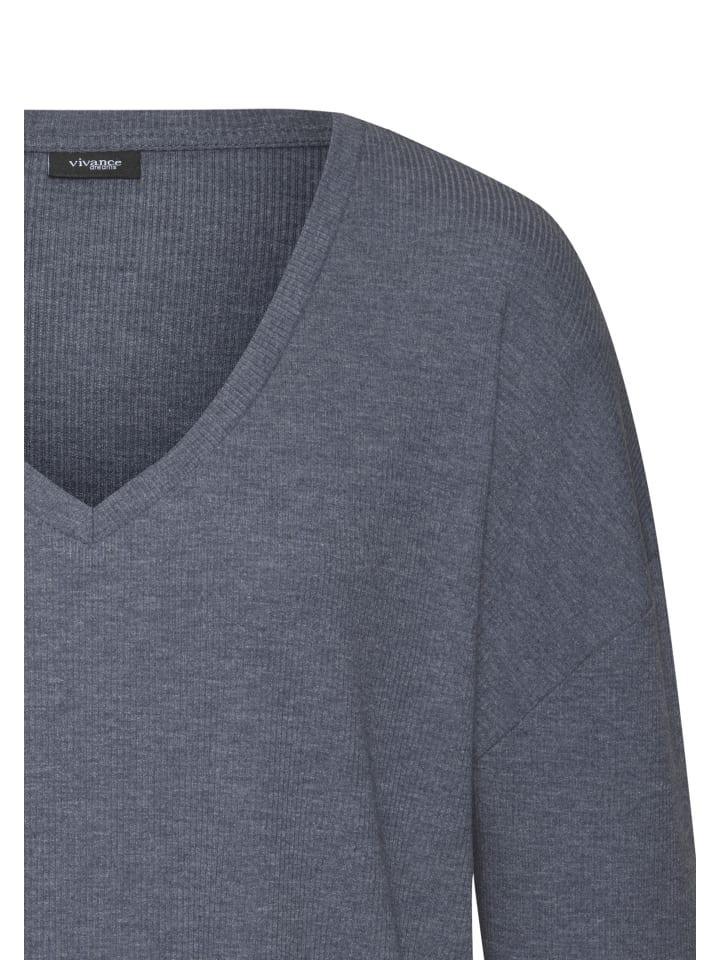 Мягкая рубашка с длинным рукавом для отдыха от Vivance Dreams. Глубокий V-образный вырез с краем. Удобная посадка. Легкая в уходе, эластичная, в тонкую рубчиковую резинку с содержанием вискозы.