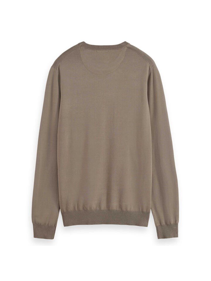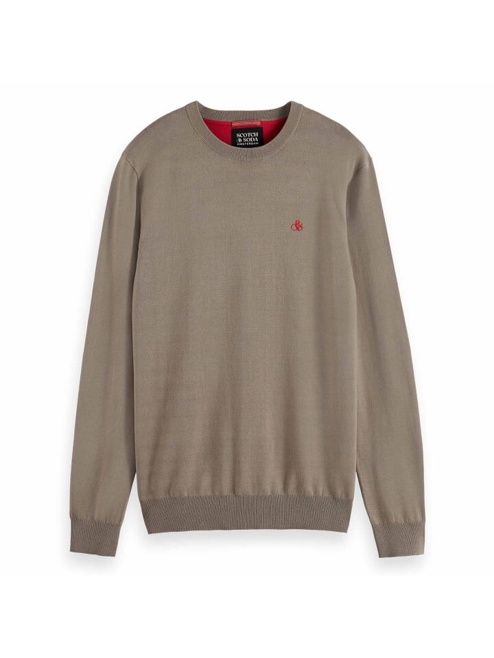 Однотонный мужской свитер с круглым вырезом от бренда SCOTCH SODA. Свитер из вискозы с небольшим логотипом на груди.
