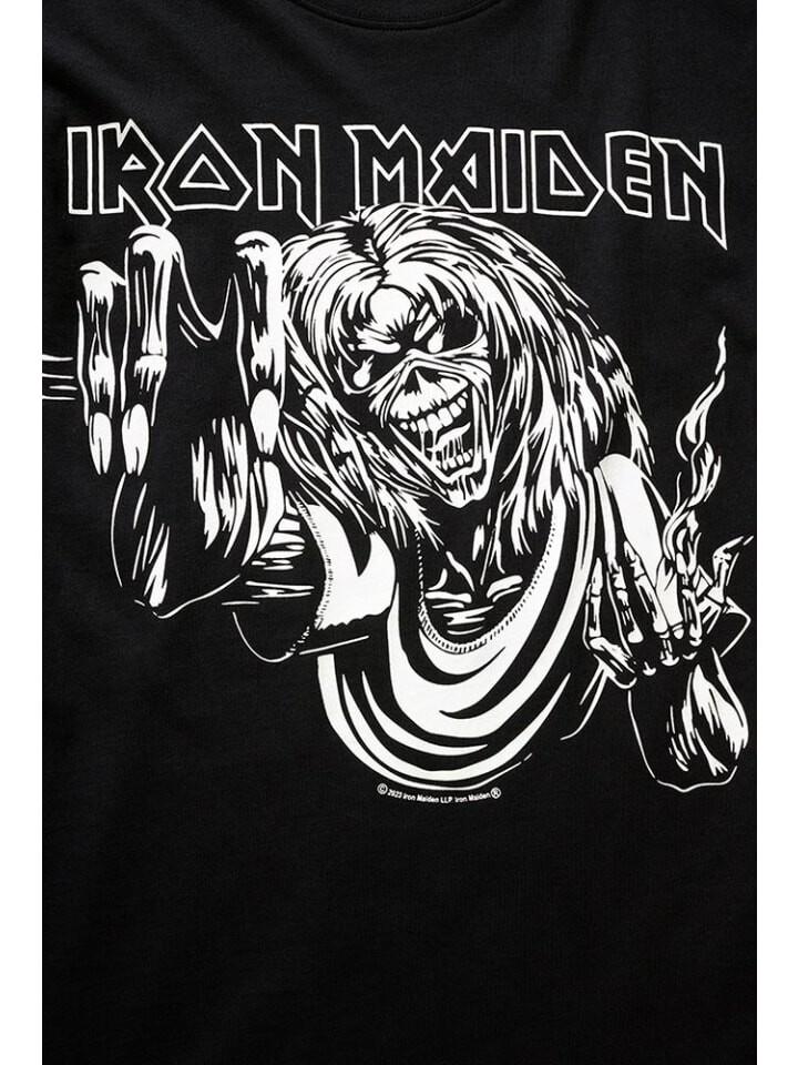 Большой принт «Эдди» спереди (светится в темноте) / Благоприятный для кожи хлопковый материал / Удобный крой, обеспечивающий удобство ношения / Круглый вырез / Короткие рукава / 160 г на м²