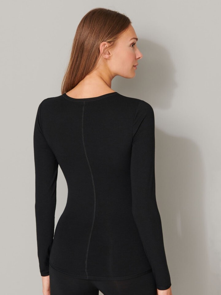 Универсальный талант чувствовать себя хорошо: эта женская рубашка с длинными рукавами из серии SCHIESSER «Personal Fit» сочетает в себе чистый внешний вид и инновационный материал. Дышащий, регулирующий влагу и стабильный по размерам, сверхэластичный одинарный трикотаж с шелковистым блеском обволакивает кожу и гармонично адаптируется к каждому движению, как вторая кожа. Идеальный вариант с длинным рукавом для женщин, которые ценят невероятно удобные базовые вещи лучшего и изысканного качества SCHIESSER!