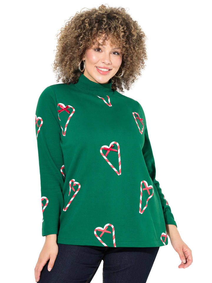 Толстовка классического кроя с милым узором в виде сердечек-конфеток. Воротник стойка, длинные рукава.