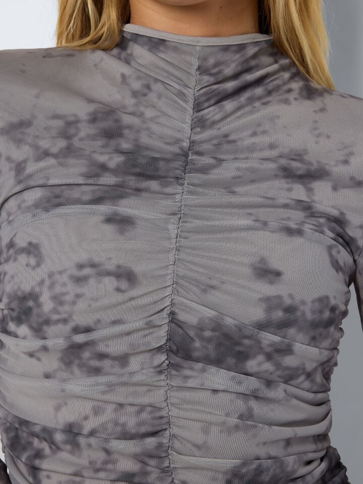 ---- NMIGGY L/S RUCHING TOP JRS FWD NOISY MAY женский топ с длинными рукавами и принтом под горло по всей поверхности Удобный стильный ----/ Товар нормальный. / Материал: 95 % переработанный полиэстер, 5 % эластан / Посадка: облегающая / Застежка: Без застежки 8173 / Рекомендации по уходу: Машинная стирка при 30°C