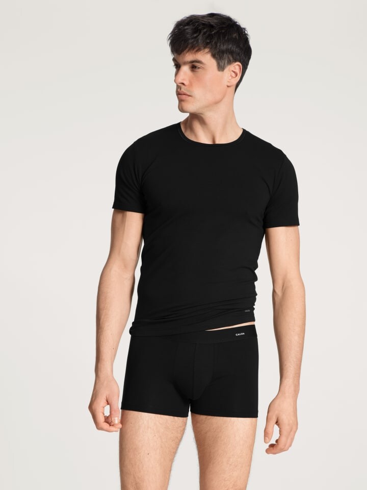 Оптимальная посадка из высококачественного хлопка, отобранного и обработанного в соответствии со строгими стандартами качества CALIDA. Этот хлопок обеспечивает хорошую циркуляцию воздуха на коже и впитывает влагу, а содержание эластана обеспечивает комфорт при ношении. Смесь особенно стабильна по размерам, за ней легко ухаживать – она идеально подходит для повседневного использования.