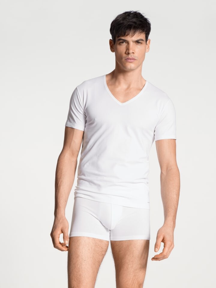 Оптимальная посадка из высококачественного хлопка, отобранного и обработанного в соответствии со строгими стандартами качества CALIDA. Этот хлопок обеспечивает хорошую циркуляцию воздуха на коже и впитывает влагу, а содержание эластана обеспечивает комфорт при ношении. Смесь особенно стабильна по размерам, за ней легко ухаживать – она идеально подходит для повседневного использования.