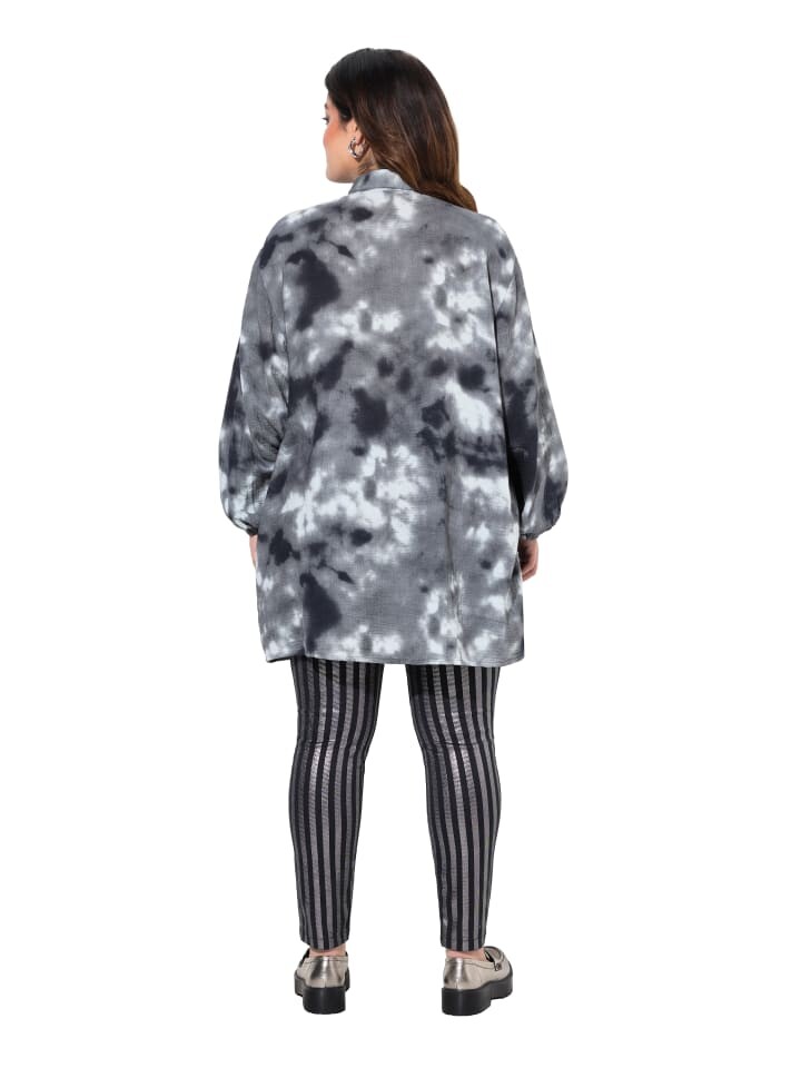 Муслиновая блуза-рубашка удобного кроя, с узором батик и тонкой структурой. Рубашечный воротник, заниженная линия плеча, широкие рукава на резинке.