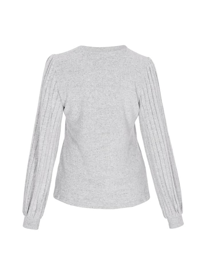 Откройте для себя стильный свитер, который сочетает в себе комфорт и элегантность с классической посадкой и круглым вырезом. Длинные рукава-фонарики придают изделию модный вид, а трикотаж украшен металлизированными нитками и шикарным меланжевым узором. Ребристые рукава подчеркивают повседневный образ. Часть коллекции Fashion Look.