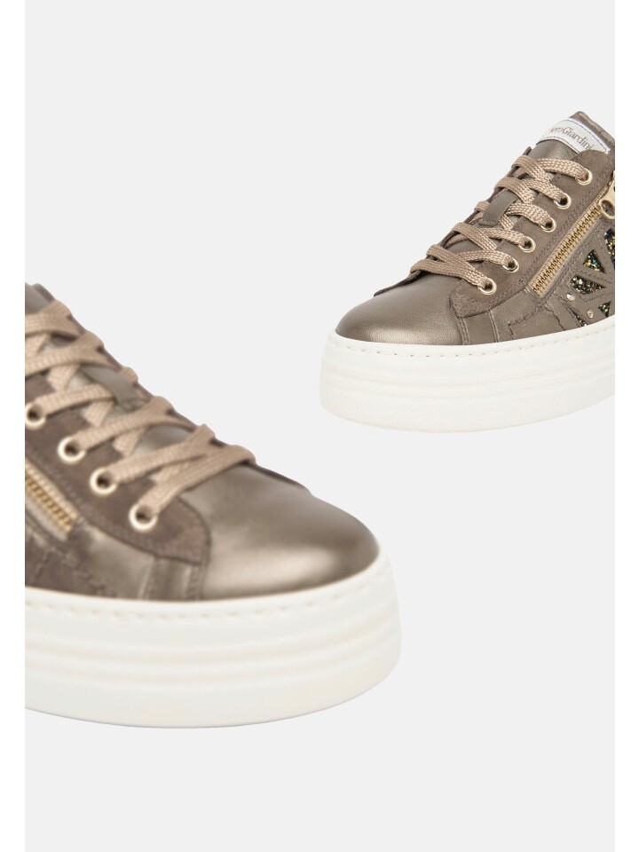 Откройте для себя роскошные женские кроссовки от Nero Giardini. Эти кроссовки оснащены шнуровкой с 6 отверстиями и декоративной боковой молнией для придания дополнительного стиля. Съемная стелька и бирка на язычке обеспечивают комфорт и элегантность. Металлическая подошва на платформе во всю длину с блестящей отделкой и каблук высотой 3 см завершают дизайн. Эти высококачественные кроссовки «Сделано в Италии» олицетворяют итальянское мастерство.