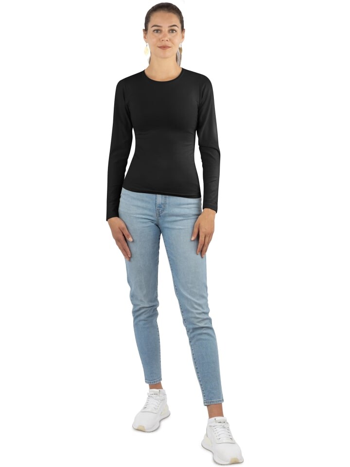 Лонгслив Janice 3 x Damen Langarmshirt hochgeschlossen Niska, черный