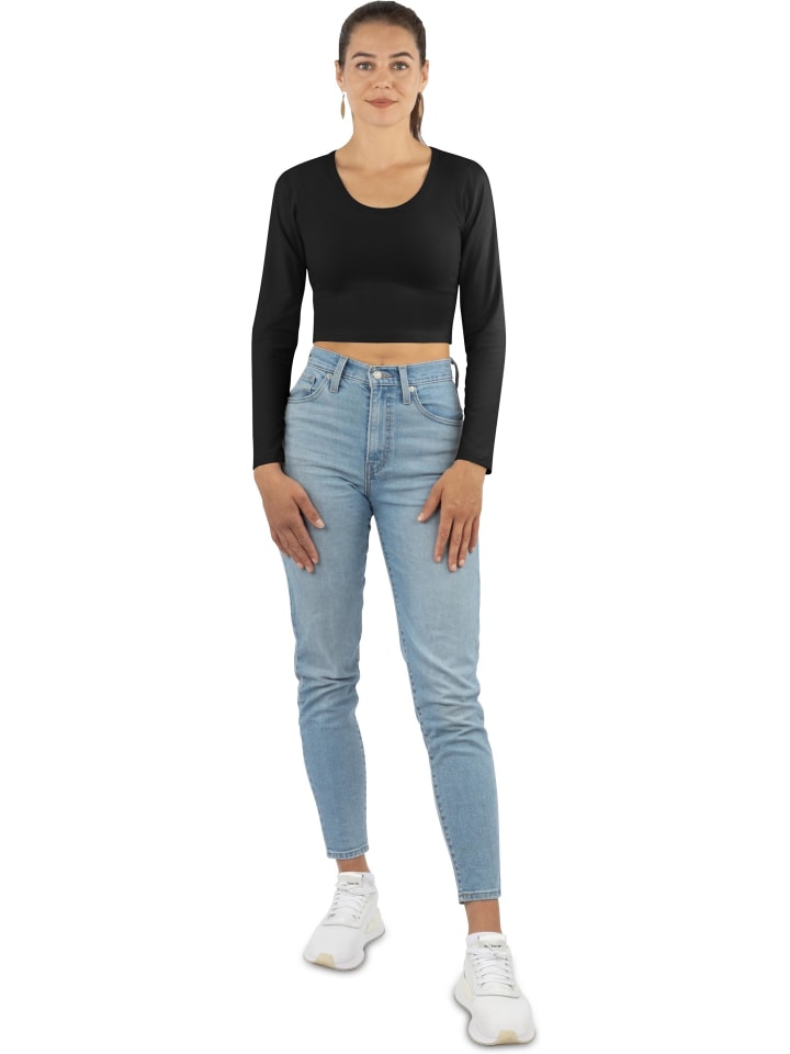 Лонгслив Janice 3 x Damen crop Langarmshirt Nerja, черный