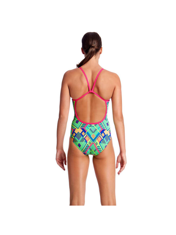 Яркий купальник Funkita для женщин с открытой спиной и V-образной системой бретелей, обеспечивающей надежную фиксацию. Логотип компании вышит в нижней части спины. Изготовлен из ткани C-Infinity, 100% итальянского полиэстера, который представляет собой яркий прорыв в технологии изготовления тканей, устойчивых к хлору. Идеально подходит для частого использования в бассейне для развлекательного и результативного плавания. Этот материал используется исключительно для моделей Funkita и Funky Trunks. Он особенно прочный, быстросохнущий, эластичный, дышащий и обеспечивает надежное сжатие. Бегает меньше.
