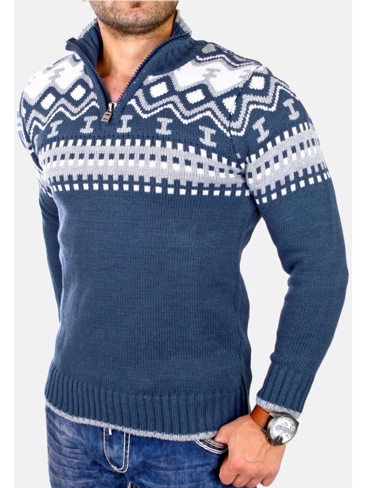 Пуловер RESLAD Strickpullover Troyer Norweger, синий