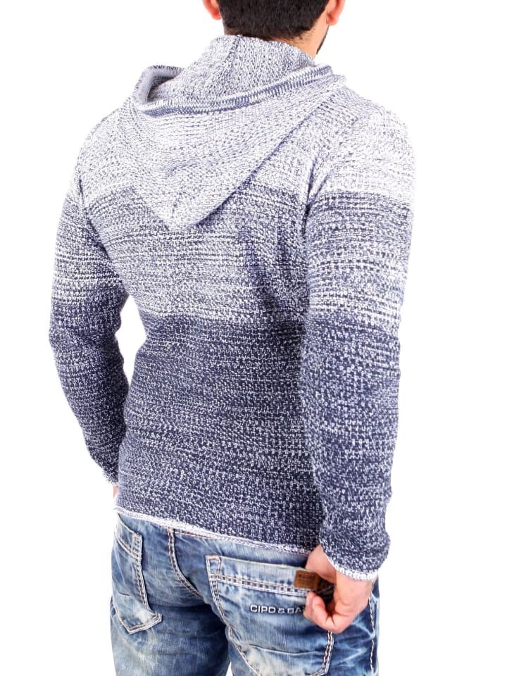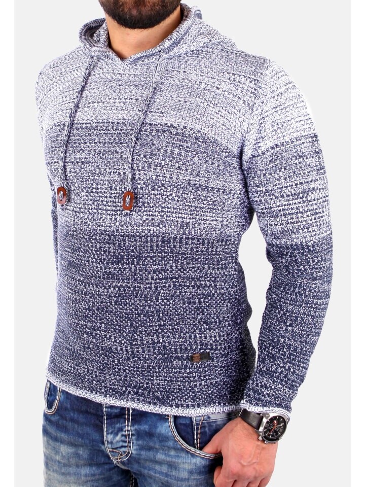Мужской вязаный свитер с капюшоном в стиле колор-блок RS-3108