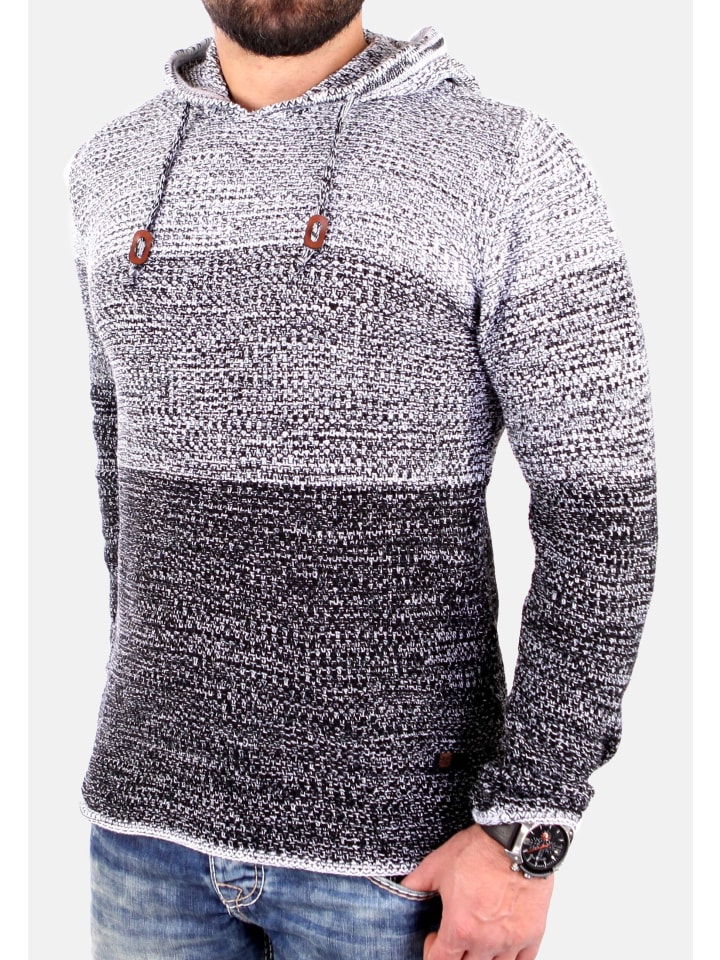 Мужской вязаный свитер с капюшоном в стиле колор-блок RS-3108