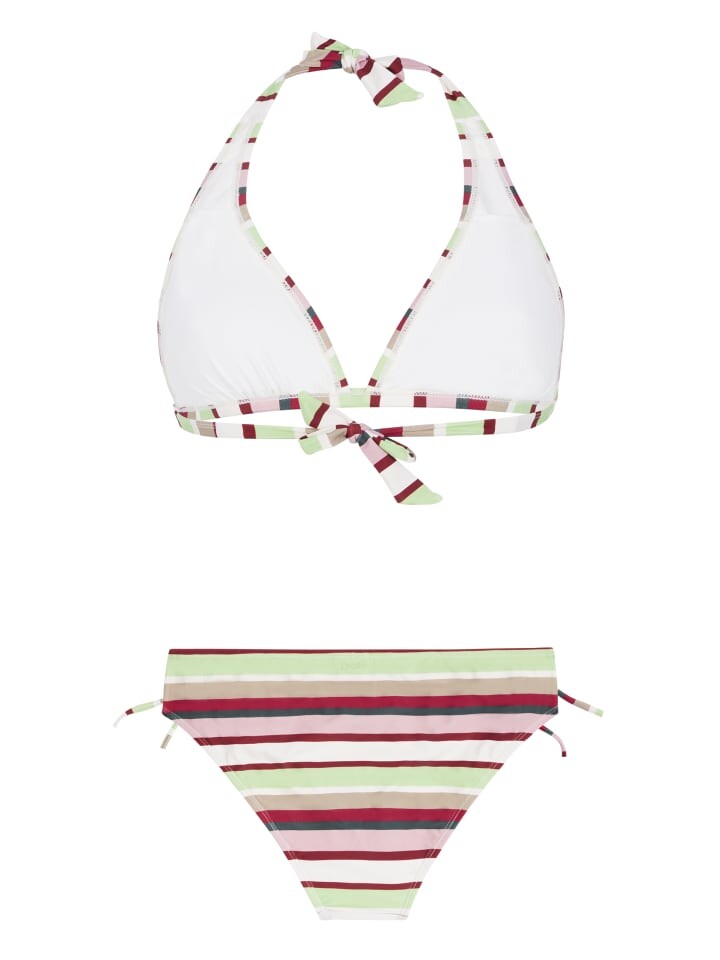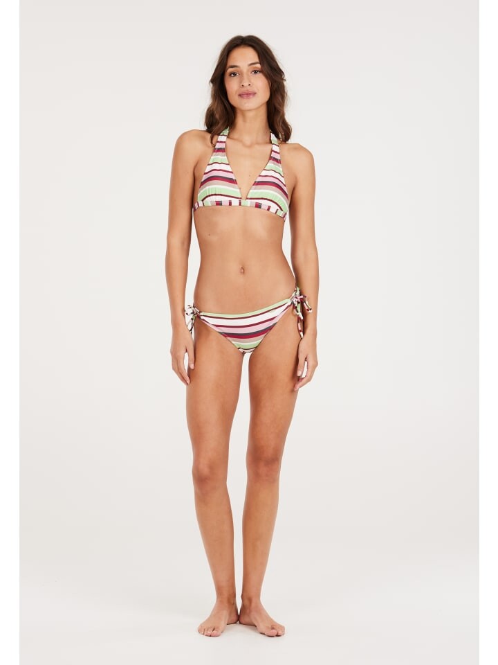 Этим летом с PRTADMIRER 24 от Protest вы выделитесь из толпы. Бикини впечатляет привлекательным полосатым узором красивых ярких цветов. Треугольный верх бикини обеспечивает индивидуальную посадку благодаря банту на спине и шее. Съемные быстросохнущие чашки обеспечивают дополнительную поддержку при необходимости. Соответствующие стандартные плавки бикини украшены красивыми бантиками по бокам. Поскольку это бикини является частью нашей коллекции PVRE Green и наших усилий по повышению экологичности наших коллекций, оно изготовлено из переработанного материала и не содержит ПФУ.