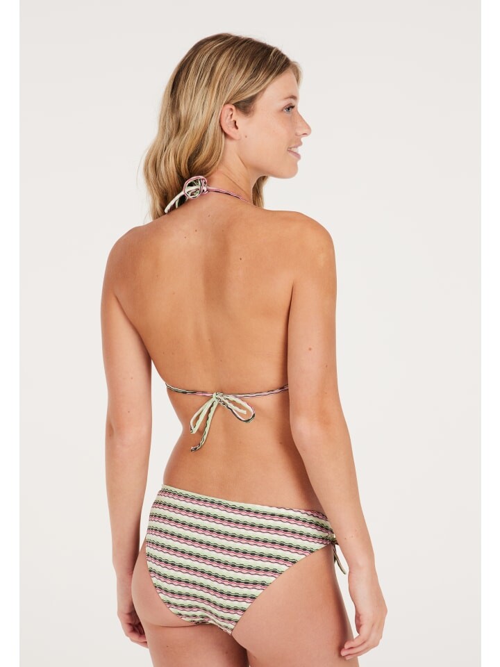 С PRTNADINE от Protest вы обогатите свой летний гардероб. Это эффектное бикини имеет красивый треугольный верх с поддерживающей регулируемой посадкой благодаря банту сзади и на шее, а также съемным быстросохнущим чашкам. Соответствующие плавки бикини обычного размера украшены красивыми бантиками по бокам. Полосатый узор привлечет внимание, куда бы вы ни пошли! Поскольку ПРТНАДИН является частью наших усилий по повышению экологичности, в его производстве не использовались ПФУ.