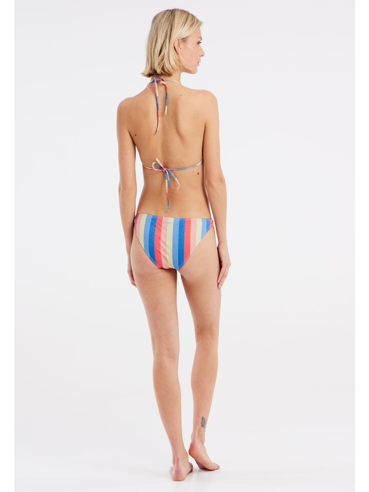 Вот ПРТПАЙК от Протеста. Это эффектное бикини украшено динамичным блестящим узором в полоску. Верх бикини стандартной посадки с треугольными чашками оснащен съемными, быстросохнущими чашками из пеноматериала, которые обеспечивают дополнительную легкость, комфорт и поддержку. Спинка и шея украшены бантиками. Соответствующие плавки бикини имеют стандартную посадку и талию. Ткань также не содержит ПФУ, что позволяет сократить использование этих химикатов и их вредное воздействие на наше здоровье и окружающую среду; Вместо этого мы полагаемся на экологически чистый производственный процесс. PRTPIKE от Protest этим летом излучает чистую пляжную атмосферу.