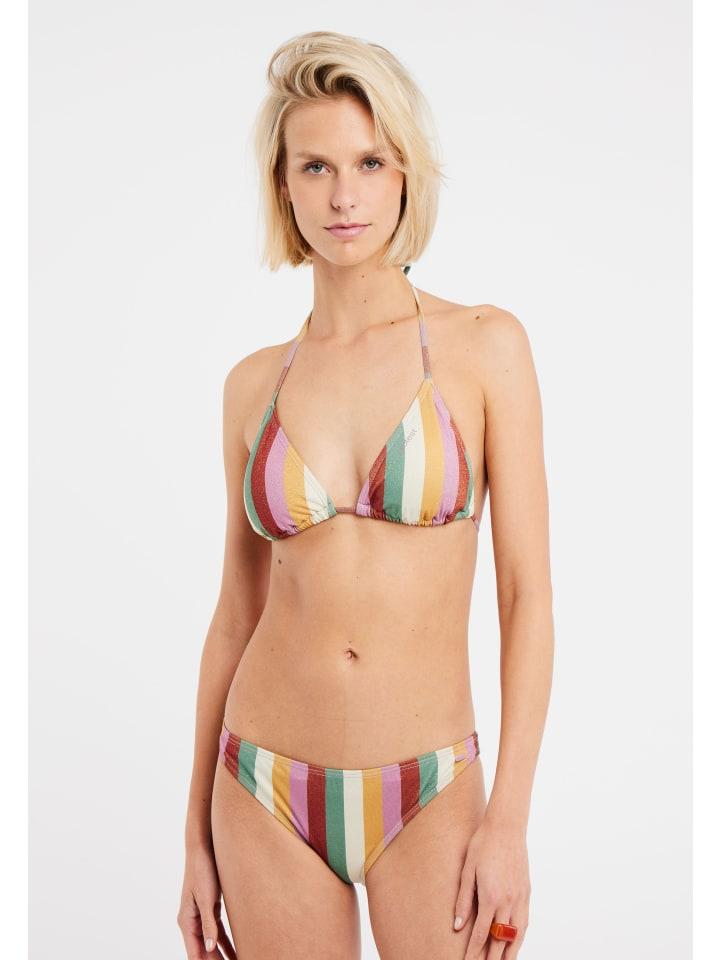 Вот ПРТПАЙК от Протеста. Это эффектное бикини украшено динамичным блестящим узором в полоску. Верх бикини стандартной посадки с треугольными чашками оснащен съемными, быстросохнущими чашками из пеноматериала, которые обеспечивают дополнительную легкость, комфорт и поддержку. Спинка и шея украшены бантиками. Соответствующие плавки бикини имеют стандартную посадку и талию. Ткань также не содержит ПФУ, что позволяет сократить использование этих химикатов и их вредное воздействие на наше здоровье и окружающую среду; Вместо этого мы полагаемся на экологически чистый производственный процесс. PRTPIKE от Protest этим летом излучает чистую пляжную атмосферу.