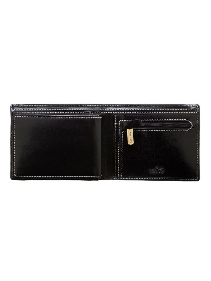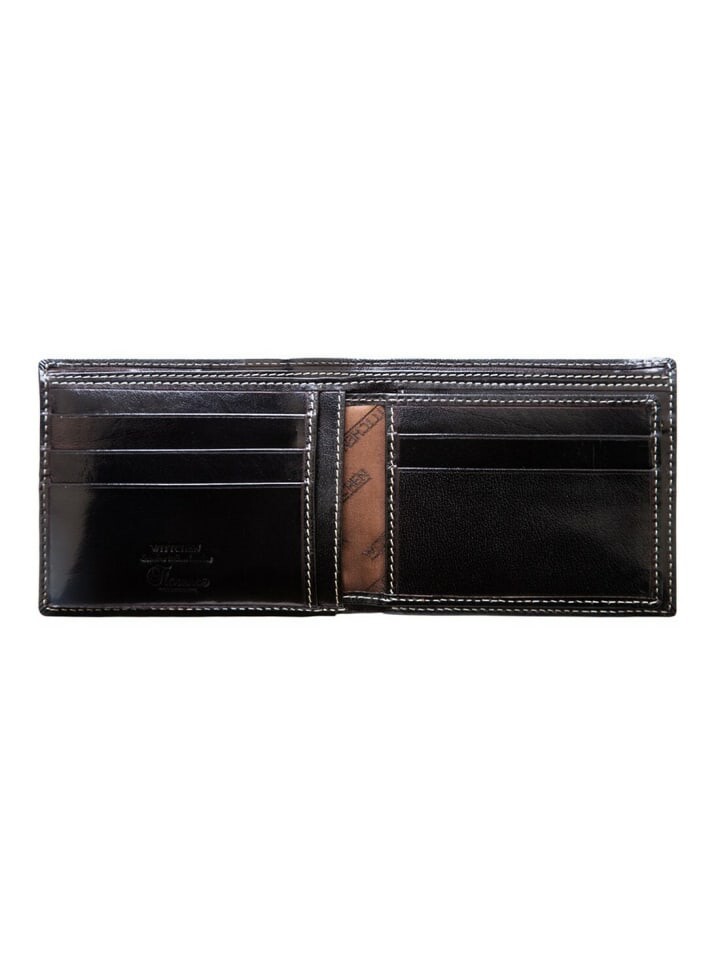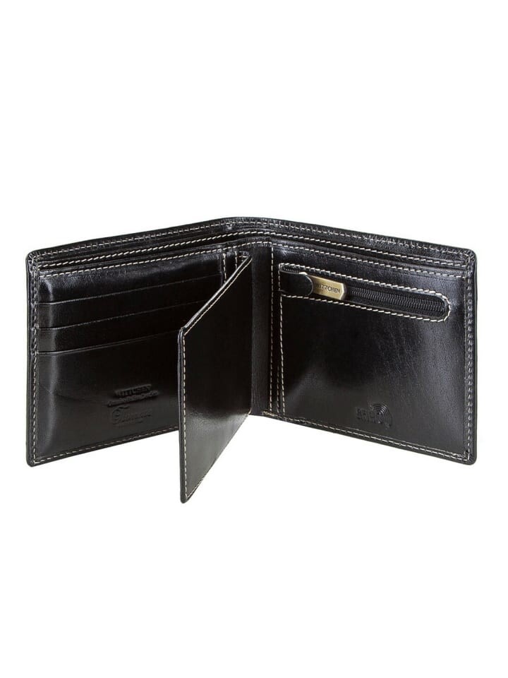 Мужской кошелек черного цвета, тщательно и изысканно изготовленный из высококачественной лицевой кожи с натуральными рисунками. Он впечатляет своим классическим дизайном с элегантными швами и логотипом WITTCHEN. Имеется выдвижной держатель для карт. Размеры: 11,5х9,5х1,5