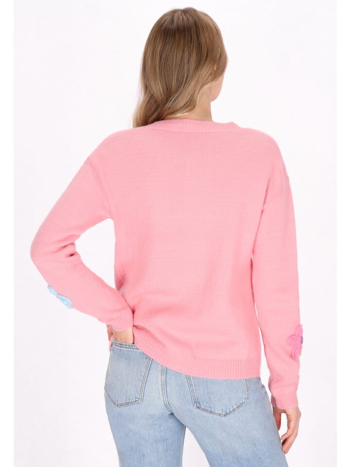 Откройте для себя этот модный кардиган, который украсит ваш гардероб. Имеет классический крой и круглый вырез. У него длинные рукава, оно украшено цветочным орнаментом, который придает игривый и милый вид. Изготовленное из трикотажа с добавлением металлизированной нити, оно воплощает молодежную моду. Он создает стильный, повседневный образ. Это часть коллекции «Снова в школу».