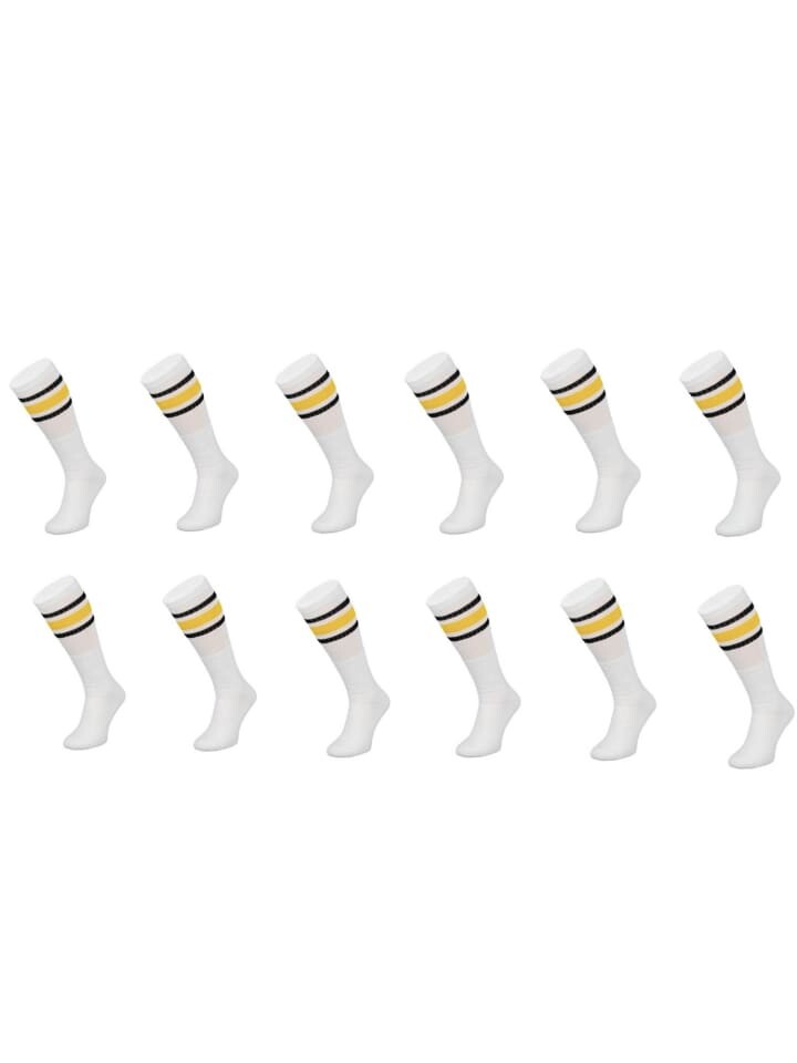 Носки COFI 1453 Basketsocken Gelb-Schwarz gestreift OneSize Weiß, белый