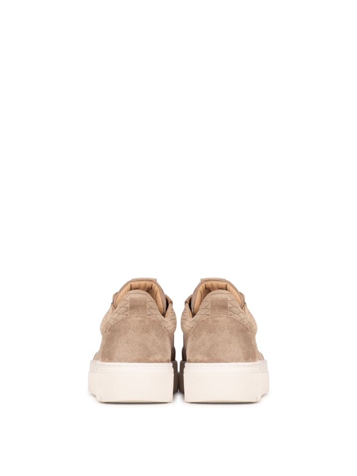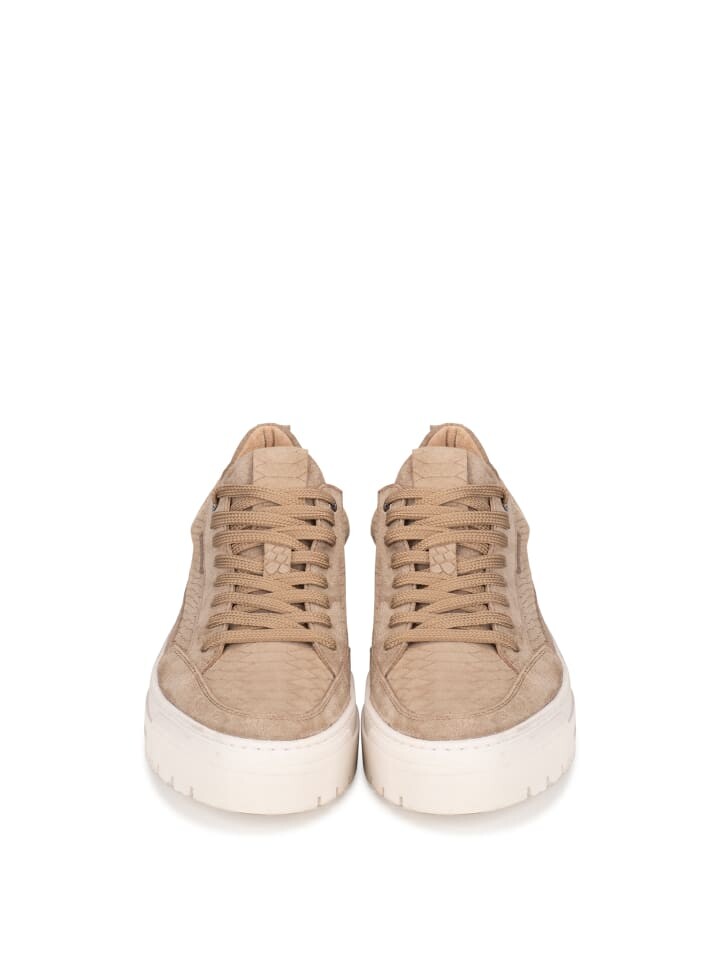 Мужские кроссовки «IVAR» от PS Poelman имеют верх из бежевой замши с принтом анаконды. Модель имеет застежку на шнуровке и удобную подошву высотой 5 сантиметров. Кроссовки имеют внутреннюю подкладку из кожи и съемную стельку.