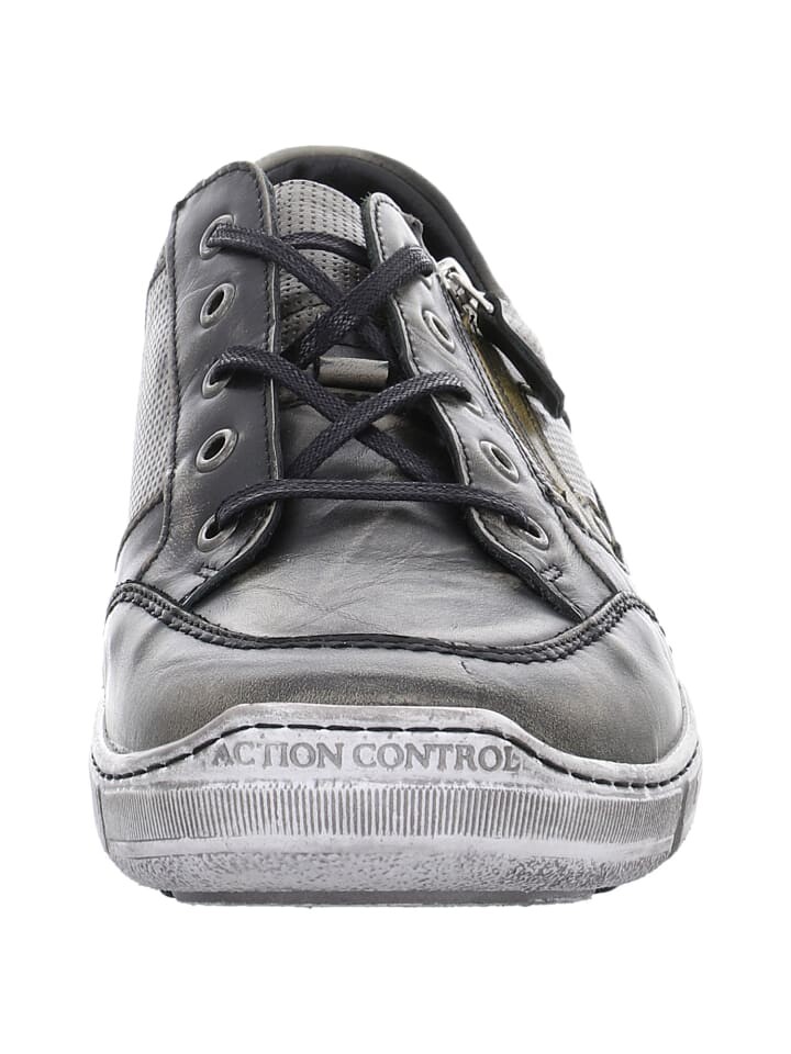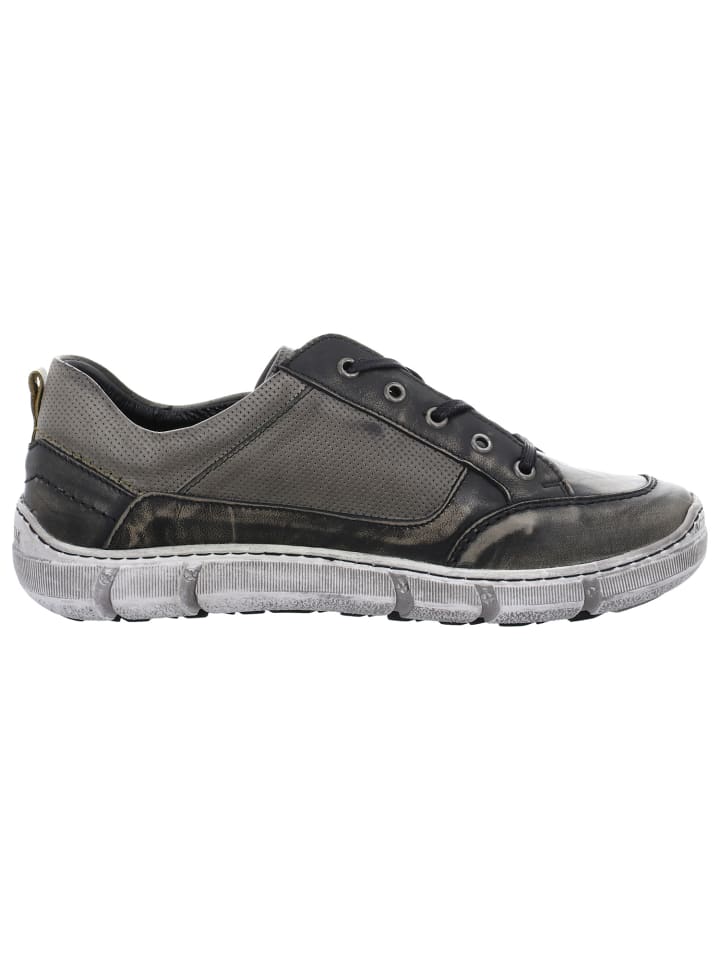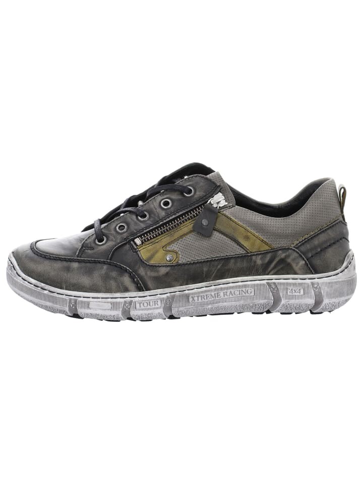 Серые спортивные мужские туфли на шнуровке от Krisbut привлекают внимание. Игривые шнурки гарантируют удобную посадку. Этому также способствует сменная подошва, которую можно заменить на другие стельки. В спортивных туфлях на шнуровке от Krisbut динамичные мужчины бегают с атмосферой