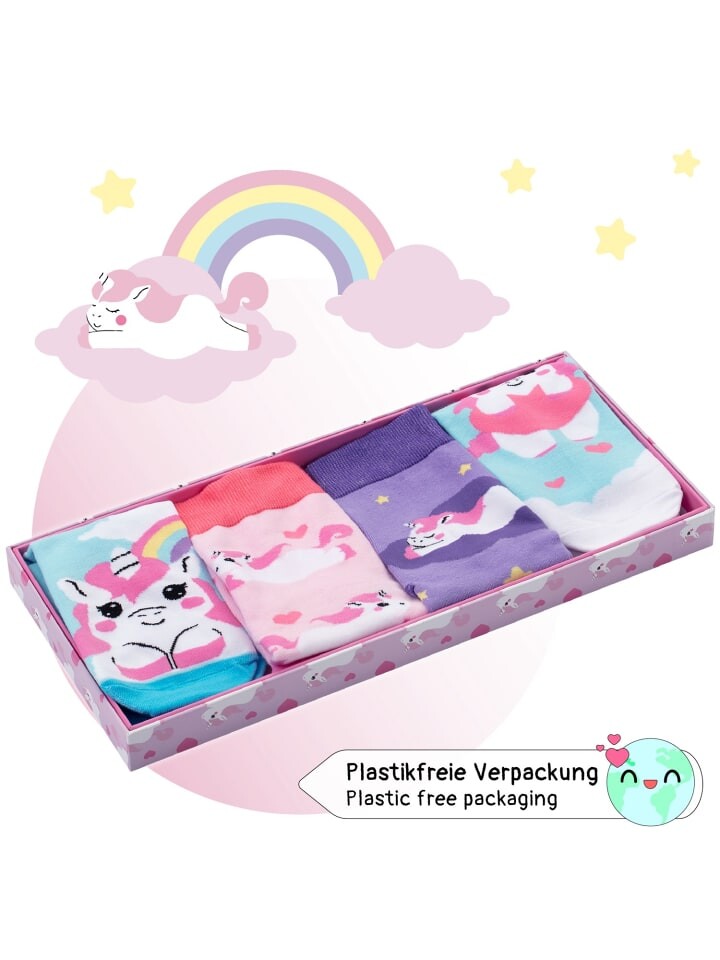 Носки Corimori Einhorn Baumwolle Socken 4er Set Geschenk-Box, цвет Rosa/blau 4 240₽