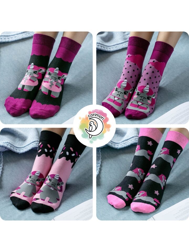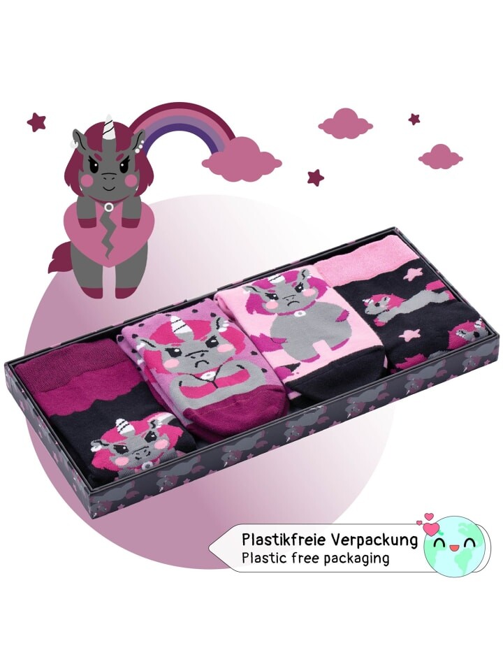 Носки Corimori Einhorn Baumwolle Socken 4er Set Geschenk-Box, цвет Anthrazit/lila