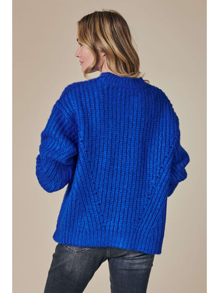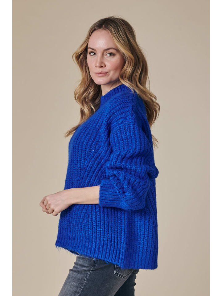 Женский вязаный свитер «Жрилл Жбарла» – идеальный выбор для стильных и уютных дней. Свитер привлекательного синего цвета впечатляет своим узором крупной вязки и стандартным кроем, обеспечивающим удобную посадку. Простой круглый вырез и длинные рукава придают модели классический шик, а ребристые манжеты на шее и рукавах создают элегантный вид. Мягкий материал, состоящий из 77% полиакрила и 23% полиэстера, гарантирует приятный комфорт при ношении и долговечность.