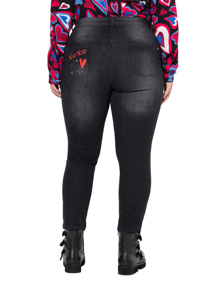 Джинсы пуш-ап, очень узкие, из эластичного денима с поддерживающей функцией и мотивом в виде сердечек. 5 карманов, пояс с петлями для ремня, пуговицей и молнией.