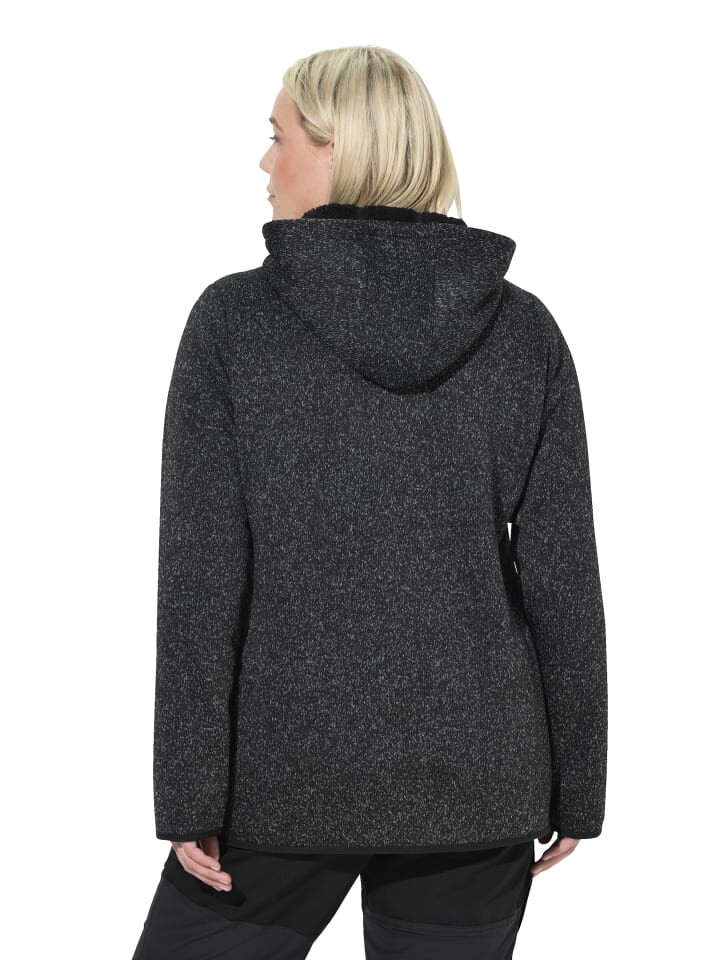 Вязаная флисовая куртка из меланжевого трикотажа, внутри уютный флис Тедди. Капюшон на шнурке. Двусторонняя молния с защитой подбородка. Боковые карманы. Модный светоотражающий принт на рукавах. Длинные манжеты на рукавах и эластичный низ.