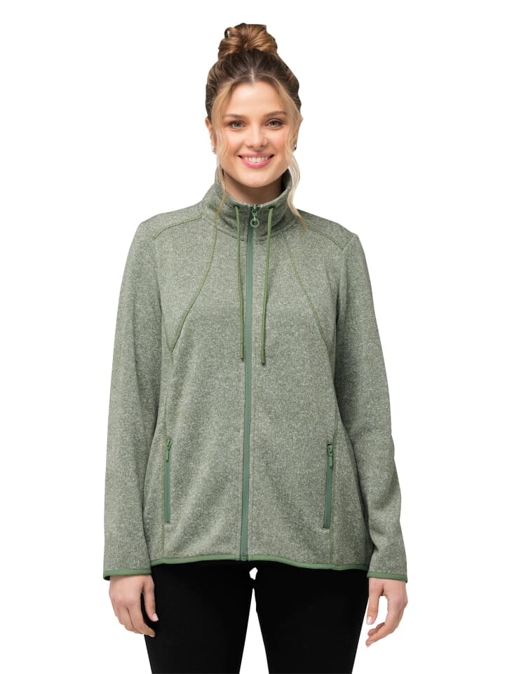 Вязаная флисовая куртка, удобная и универсальная. Вязать снаружи ромбовидным узором, внутри уютный флис. Воротник-стойка с завязками, молния, 2 кармана на молнии. Длинный рукав. Эластичная кромка.