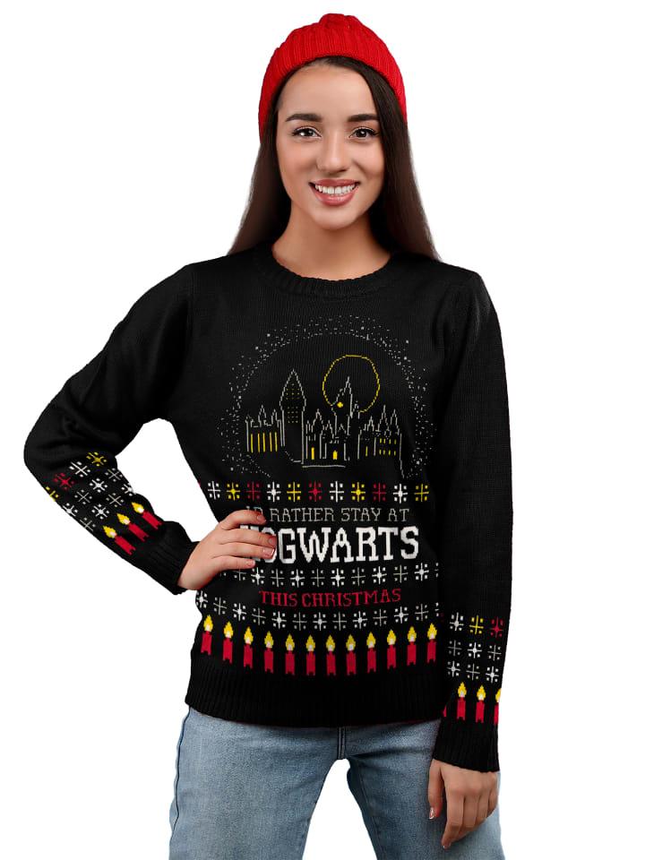 Зимний свитер унисекс с Гарри Поттером - Я лучше останусь в Хогвартсе в это рождественское зимнее вязаное пуловерное свитшот Уродливый свитер для мужчин и женщин черный