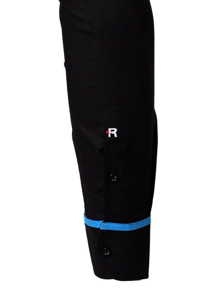 Дизайнерская клубная рубашка Reslad контрастного цвета с эксклюзивной контрастной планкой на пуговицах и изящными аппликациями. Благородная, элегантная рубашка облегающего кроя на любой случай. облегающий крой