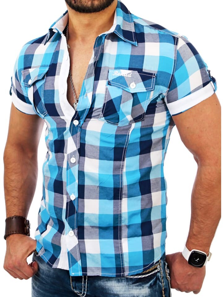 Рубашка RESLAD Hemd Oceanside Karo, бирюзовый