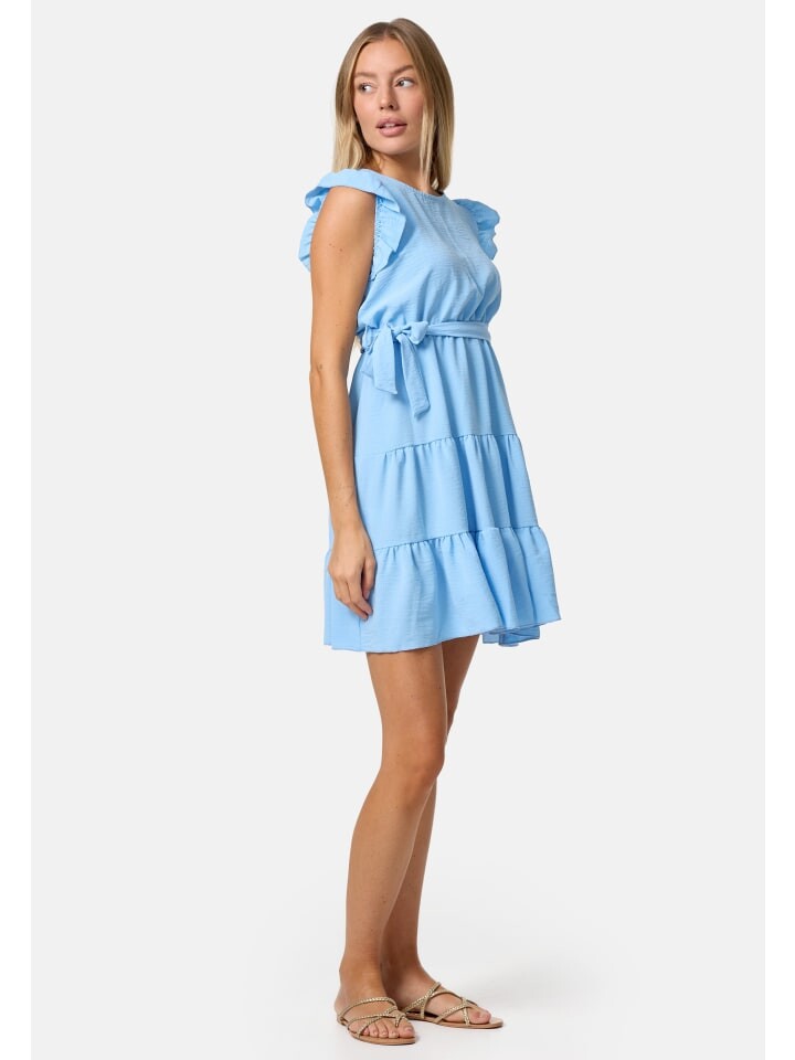 Очаровательное женское платье мини/миди с рюшами из мягкой струящейся ткани с рукавами-крылышками и милым поясом-завязкой в тон. Расклешенная юбка модного женского мини-платья состоит из трех широких рюшей и имеет длину примерно до середины бедра. Небольшие рукава-крылышки создают девичий образ, который подойдет каждой женщине. Платье можно застегнуть на пуговицу сзади. Высокий круглый вырез завершает переднюю часть. Привлекательное платье с игривыми рюшами идеально подходит для солнечных дней и придает образу женственности и игривости. Оборки на рукавах и подоле придают платью романтичный вид, а пояс-завязка подчеркивает талию и создает привлекательный силуэт. Округлый вырез обеспечивает элегантную, но удобную посадку. Эластичный пояс под ремнем с петлями для ремня обеспечивает идеальную посадку и высокий комфорт при ношении. Выгодный крой мягко подчеркивает фигуру и обеспечивает удобную посадку. Ткань мягкая и комфортная в носке - идеально подходит для летних дней на пляже и в свободное время. Также подходит для случайных вечеринок с друзьями или прогулок по городу. Невероятно удобный и модный шик. Модное мини-платье – это не только стильный внешний вид, но и высокий уровень комфорта. Легкий материал обеспечивает комфортную свободу движений и позволяет коже дышать, а оборки и короткие рукава придают игривый вид. Игривое мини-платье привносит летнее настроение в отпуск и в повседневную жизнь. Мягко драпирующаяся ткань легко и плавно ниспадает и создает приятные ощущения при ношении – легкость и комфорт. Воздушный материал идеален для лета и теплых дней, когда хочется наслаждаться жизнью. Будь то отдых, отпуск, пляж, встреча с друзьями, небольшое торжество или прогулка по городу – романтическое мини-платье обеспечит идеальный внешний вид, непринужденность и девичье очарование. Женственное платье с рюшами в летнем стиле!