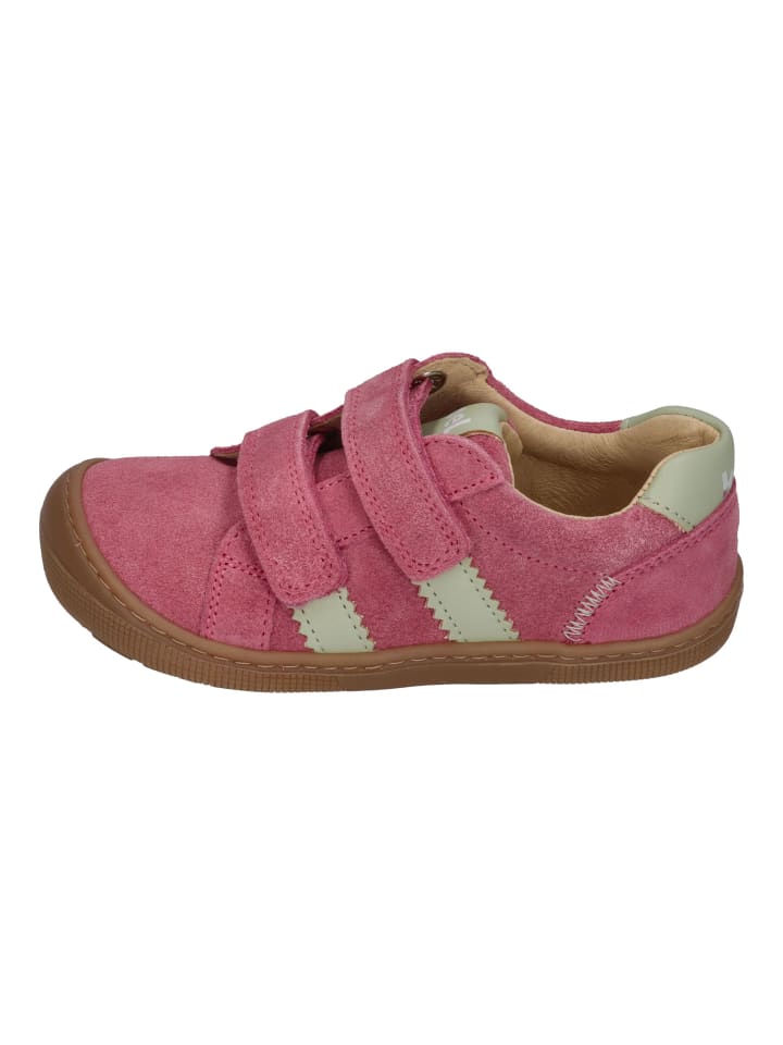 Детская обувь KOEL Barefoot - кроссовки DENIS SUEDE розового цвета со светло-зелеными деталями предлагают оптимальное сочетание стиля и комфорта для маленьких ножек. Верхний материал выполнен из высококачественной замши и деталей из гладкой кожи, а внутренний материал — кожа без хрома, что обеспечивает удобную посадку. Нескользящая и сверхгибкая резиновая подошва обеспечивает детям необходимую свободу движений во время игр и бега. Съемная стелька особенно практична, с ее помощью родители могут легко проверить, подходит ли обувь по размеру. Благодаря технологии босиком между пяткой и передней частью стопы нет разницы в высоте, что способствует естественному развитию стопы. Обувь также не содержит вредных материалов и изготовлена вручную в Португалии. Обувь легко надевать и снимать благодаря застежкам-липучкам. Детская обувь KOEL Barefoot не только функциональна, но и очень модна. Обратите внимание: обувь Barefoot создает большую нагрузку на мышцы стопы и совершенно отличается от «обычной» обуви со стельками и/или более толстой подошвой. Для новичков в босоногой обуви очень важно постепенно привыкнуть к незнакомой нагрузке. Если ваша стопа смещена, вам обязательно следует заранее проконсультироваться у ортопеда, чтобы избежать боли или напряжения.