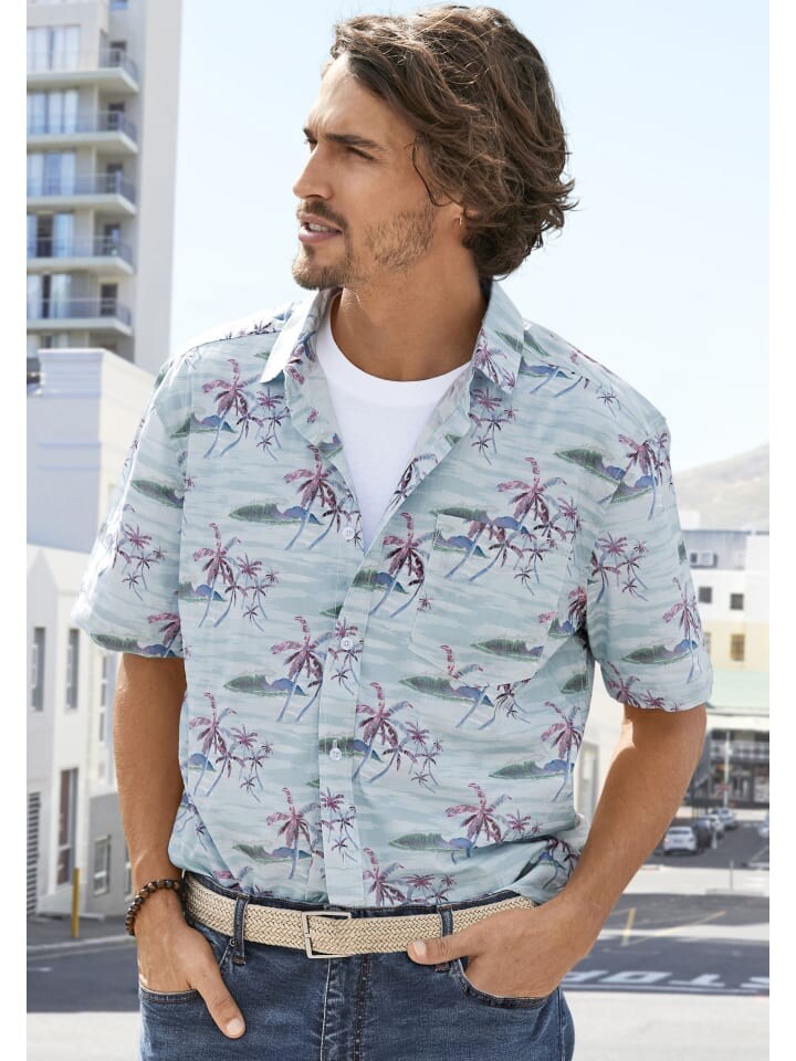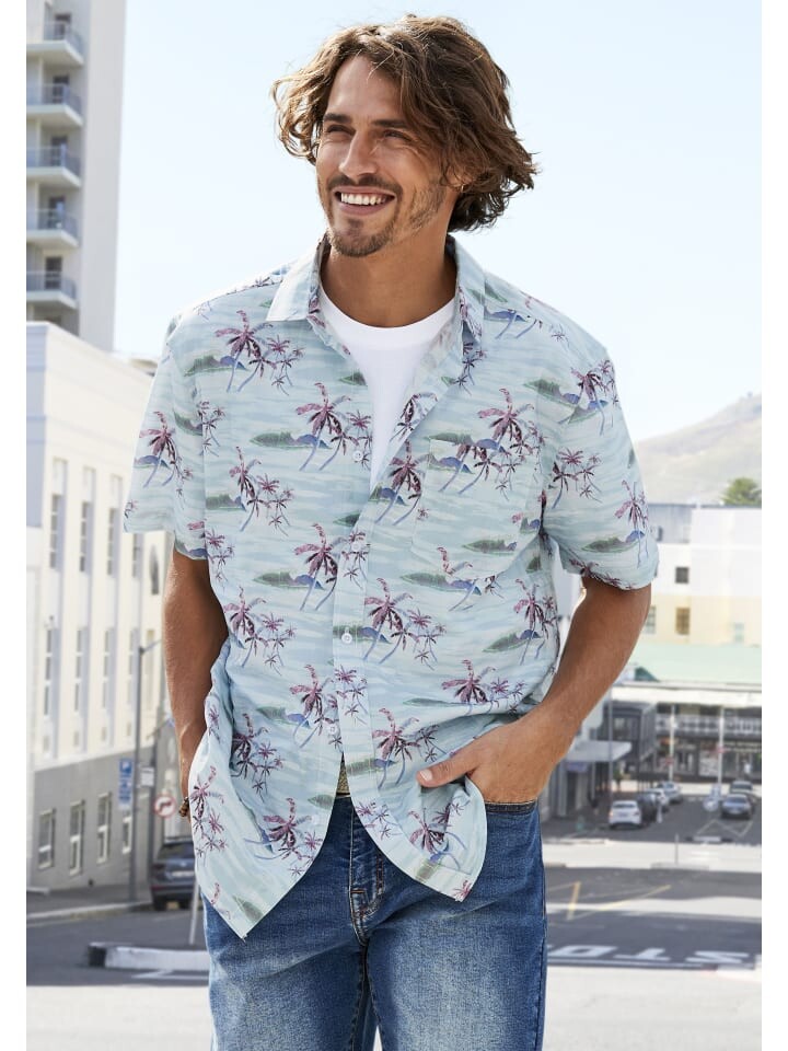 Воздушная мужская гавайская рубашка с короткими рукавами от Beachtime. С обычным рубашечным воротником и закругленным краем, а также нагрудным карманом и кокеткой в области плеч. Идеально подходит для отдыха. Изготовлен из мягкого хлопка.
