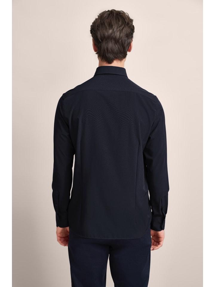 Ощутите гибкость и стиль с рубашкой bugatti Performance. Эта рубашка, изготовленная из прочной смеси полиэстера и эластана, обеспечивает исключительный комфорт и плотную посадку благодаря технологии Modern Fit. Шикарный воротник «Кент» и круглые манжеты с двумя пуговицами дополняют элегантный дизайн. Идеально подходит для динамичной повседневной жизни!