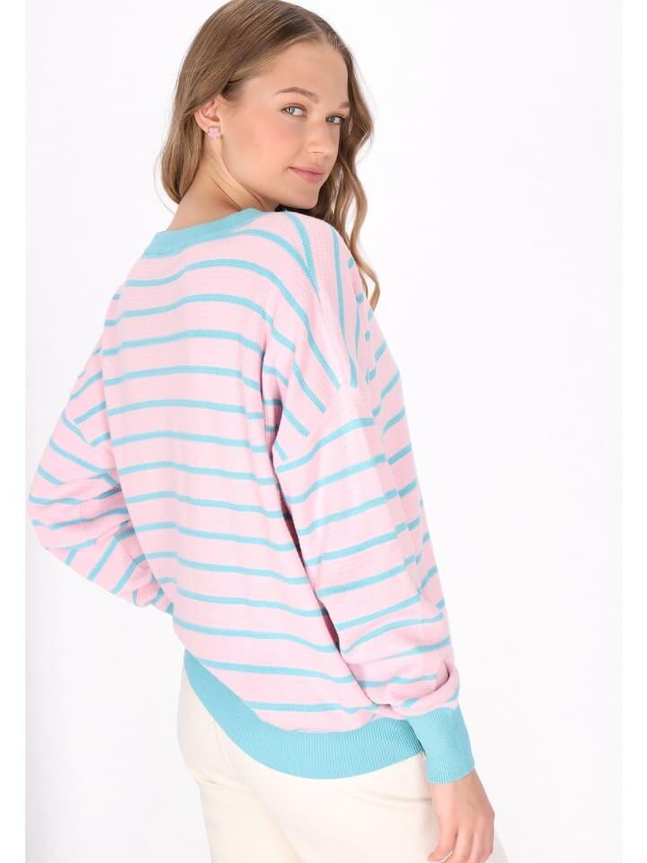 Откройте для себя модный свитер свободного кроя и круглым вырезом. Этот свитер с длинными рукавами имеет ребристые манжеты, подол и вырез для комфорта. Изготовленное из трикотажного полотна, оно обеспечивает тепло и идеально подходит для любителей моды. Этот свитер со стильным полосатым узором идеально подходит для повседневной носки. Это часть коллекции «Снова в школу».