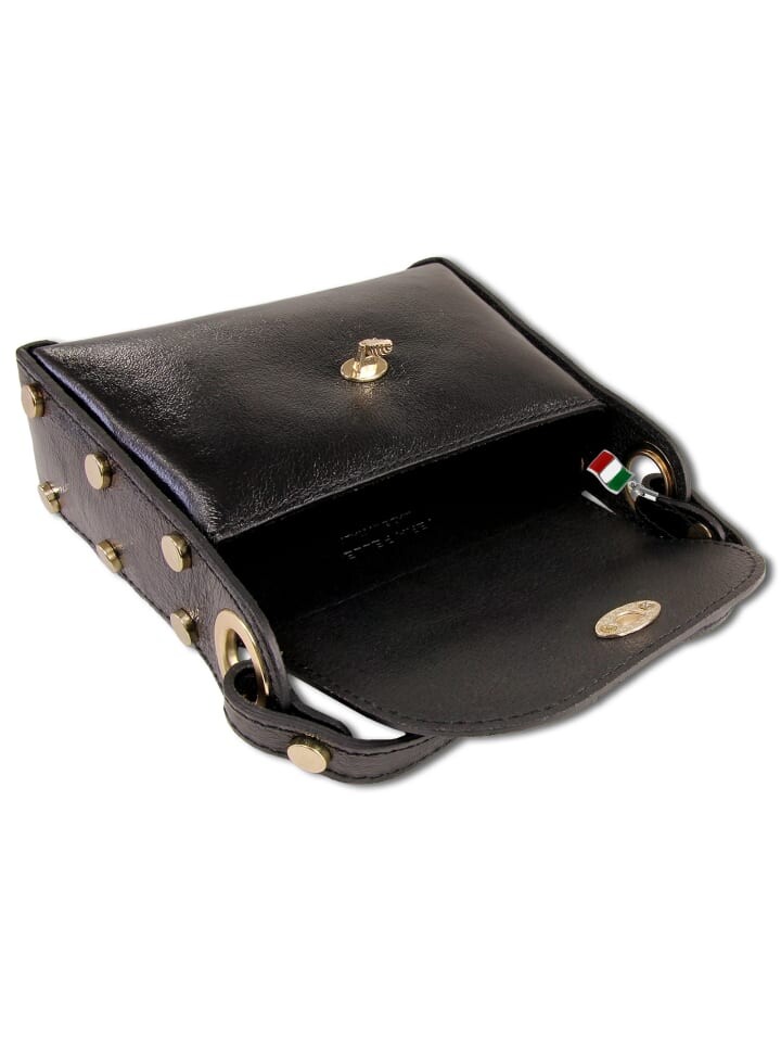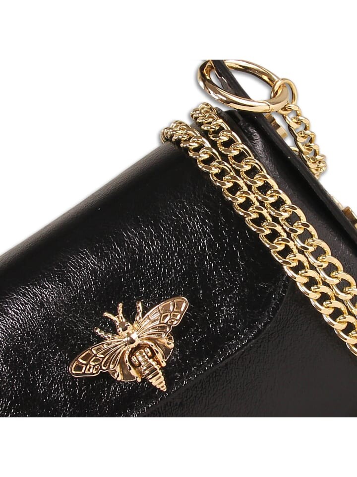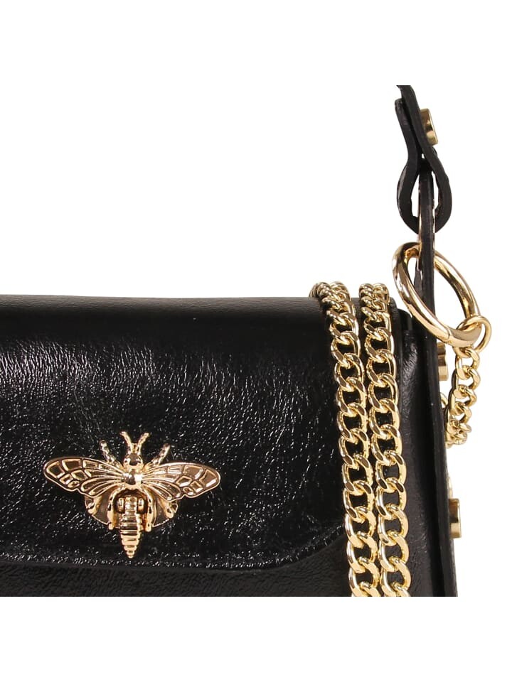 Сумка через плечо из пчелиной кожи женская черная металлик Флоренция