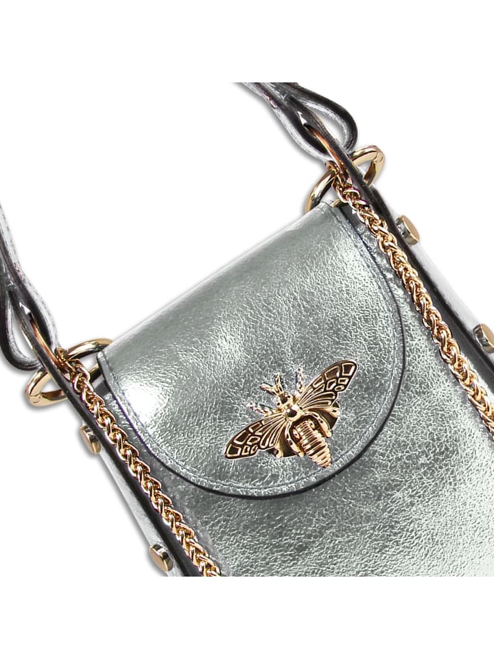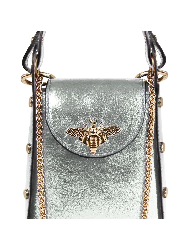 Сумка через плечо из пчелиной кожи женская серебристый металлик Флоренция
