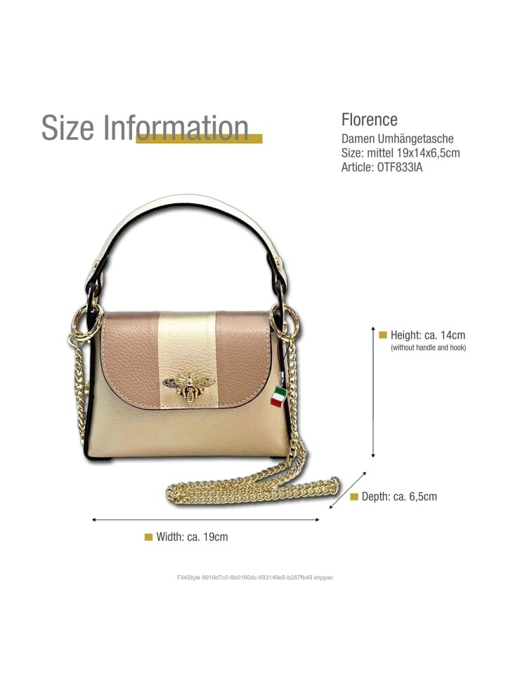 Наплечная сумка Florence Umhängetasche Leder beige, rosa ca. 19cm