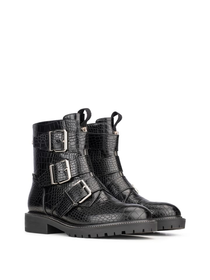 Женские байкерские ботинки JANET от POSH by Poelman имеют верх из черной искусственной кожи со змеиным принтом. Модель оснащена молнией внутри. Подкладка выполнена из микрофибры, ботинки имеют прочную стельку. из искусственной кожи. Прочность. Детали серебристого цвета придают ботинкам женственный вид и очень модны. Их также можно прекрасно сочетать с длинным платьем, юбкой или узкими джинсами!