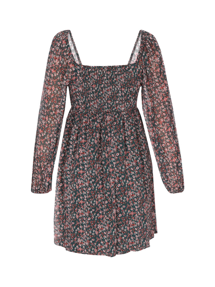 Модное мини-платье с шикарным вырезом-трапецией и длинными рукавами идеально подойдет юным любительницам моды. Вырез на талии подчеркивает силуэт, а легкая шифоновая ткань излучает элегантность. Идеально подходит для возвращения в школу или повседневных прогулок. Платье прямого кроя с ярким цветочным узором. Это часть коллекции «Снова в школу».
