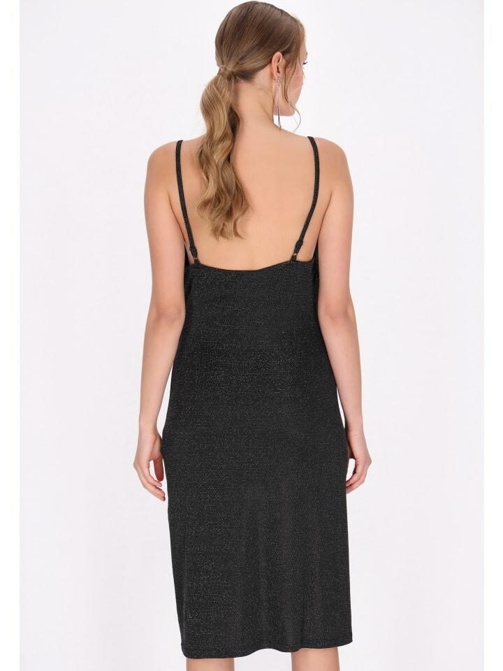 — Платье-комбинация стандартного кроя с воротником-хомутом и нежным блеском