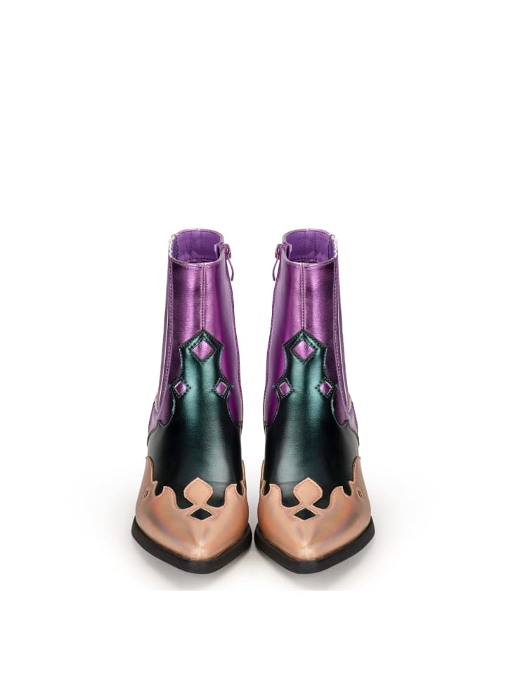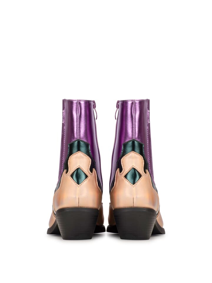 Эти ботинки в стиле вестерн «ROXI» от POSH от Poelman имеют верх из искусственной кожи розового и зеленого цветов. Модель застегивается на молнию и имеет каблук в стиле вестерн высотой 5 см. Ботильоны имеют внутреннюю подкладку из ткани и прочную стельку.