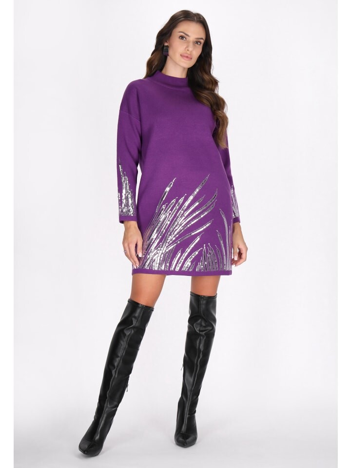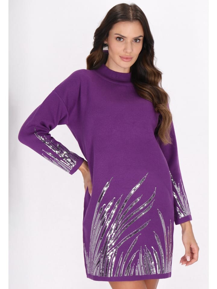 Подчеркните свой стиль с помощью этого длинного платья с высоким воротником, украшенного мерцающими пайетками. Свободный крой изящно доходит до колена, обеспечивая тепло без ущерба для моды. Идеально подходящее для любого случая, это платье сочетает в себе комфорт и изящество, что делает его незаменимым дополнением вашего гардероба.